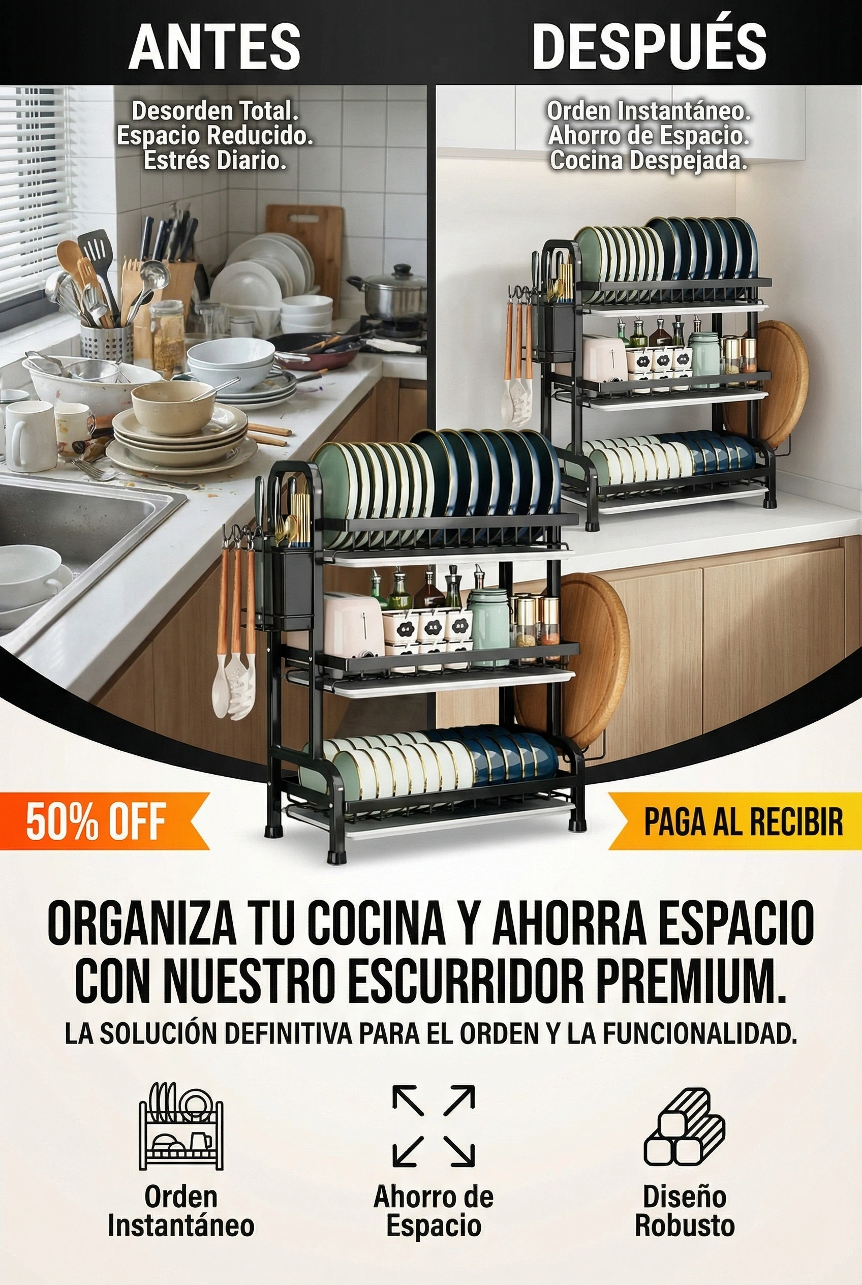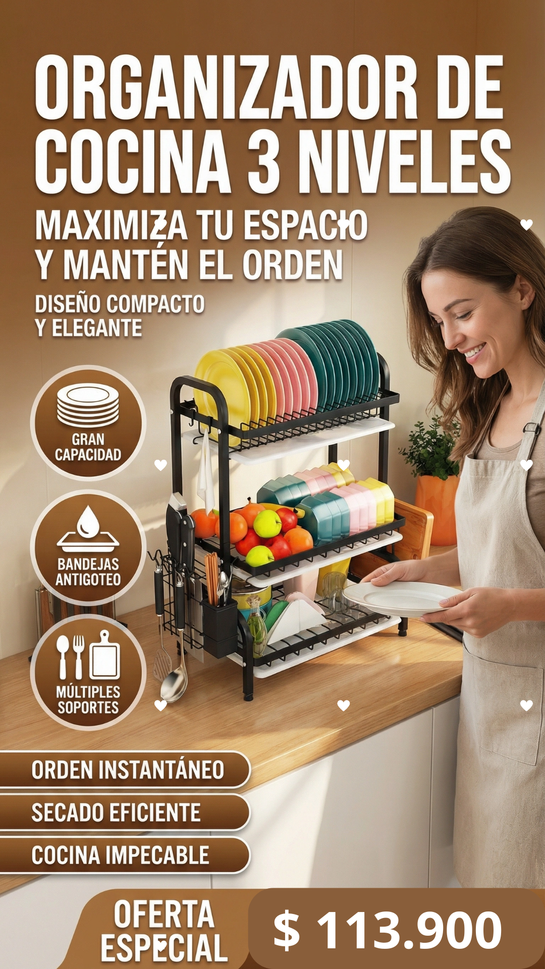 ESCURRIDOR DE PLATOS DE 3 NIVELES
